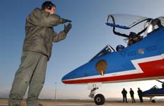 10月9日和10日,法國(guó)空軍“法蘭西巡邏兵”飛行表演隊(duì)將隨希拉克總統(tǒng)到訪北京,為首都人民獻(xiàn)上兩場(chǎng)經(jīng)典的“空中芭蕾”。據(jù)悉,這是西歐國(guó)家空軍特技飛行表演隊(duì)首次訪華做公開表演,隨后他們將前往武漢等地進(jìn)行巡回表?/span>