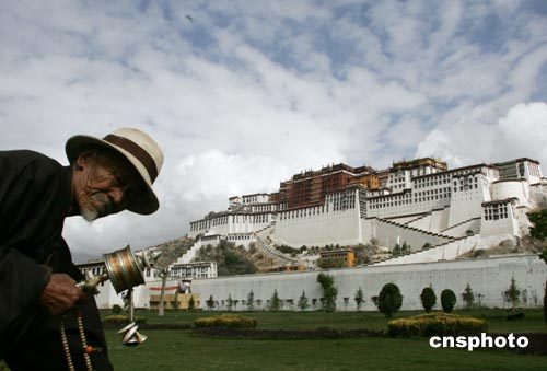 記者視角:布達(dá)拉宮前虔誠(chéng)的朝拜者(圖)