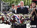 圖:法國(guó)總統(tǒng)希拉克向無名烈士墓敬獻(xiàn)花圈