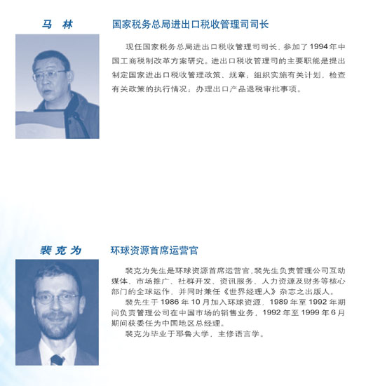 首屆年會(huì)于2003年1月10日在北京召開。邀請(qǐng)了包括原外經(jīng)貿(mào)部副部長龍永圖在內(nèi)的各有關(guān)政府部門領(lǐng)導(dǎo)、專家學(xué)者、企業(yè)家400多位嘉賓參加……<全文>