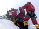 登山隊(duì)員在珠峰頂合影 |