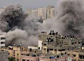 第七日 以軍向一個(gè)據(jù)說(shuō)用于隱藏武器的巴勒斯坦清真寺進(jìn)行了轟炸,同時(shí)向大約20所據(jù)稱是哈馬斯及其他武裝組織軍事領(lǐng)導(dǎo)人的住宅發(fā)動(dòng)了空襲。但轟炸進(jìn)行時(shí),這些住宅都是空的。以軍戰(zhàn)機(jī)還向加沙東部拋灑大批宣傳單,希望人們向其報(bào)告哈馬斯火箭彈發(fā)射小隊(duì)的位置。當(dāng)天,哈馬斯襲擊了以南部一座城市的幾棟公寓樓?偹劳鋈藬(shù)升至430人。有消息稱,哈馬斯得到射程更遠(yuǎn)的導(dǎo)彈,可能危及以色列核設(shè)施。【詳細(xì)】