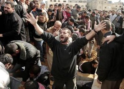第六日 哈馬斯領(lǐng)導(dǎo)人尼扎爾•拉揚(yáng)的住所遭到以軍轟炸,他本人及多名家人喪生。這是以軍空襲加沙以來(lái)首次炸死哈馬斯高級(jí)領(lǐng)導(dǎo)人?偹劳鋈藬(shù)則上升至410人,2000多人受傷。當(dāng)天,以色列國(guó)防部公布了“鑄鉛行動(dòng)”的最新戰(zhàn)報(bào),稱已摧毀了哈馬斯位于加沙的450處據(jù)點(diǎn),有25處是在新年第一天的襲擊中擊毀的。另外,聯(lián)合國(guó)安理會(huì)召開會(huì)議,就呼吁加沙地帶實(shí)現(xiàn);鸬臎Q議草案進(jìn)行討論,但因英美反對(duì)而未獲通過(guò)。【詳細(xì)】