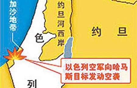 第二天 以軍方對(duì)加沙進(jìn)行了50多次空襲,炸毀多座建筑,包括一家哈馬斯電視臺(tái)和哈馬斯的一座監(jiān)獄。下午,以色列戰(zhàn)機(jī)轟炸了加沙南部與埃及臨近的拉法一帶。以軍方面稱摧毀了40余條哈馬斯的地下秘密通道,造成2人死亡,20多人受傷。晚上,以軍的F16戰(zhàn)機(jī)發(fā)起新一輪空襲,炸毀加沙城西部一棟兩層高的警察大樓,還炸毀了其他建筑和車輛,其中包括伊斯蘭大學(xué)的建筑?偣苍斐芍辽287人死亡、900多人受傷。【詳細(xì)】