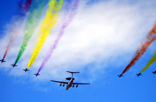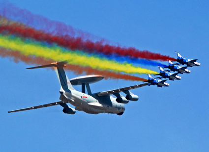 空軍有關(guān)部門日前發(fā)布消息稱,在60周年國慶閱兵中,率先飛過天安門的空軍“八一”飛行表演隊(duì),將換裝由中國自主研發(fā)設(shè)計(jì)的殲-10戰(zhàn)機(jī),并噴涂新裝……
