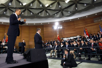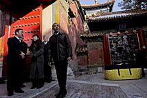 布什 任期之內4次訪問中國。2008年8月8日出席北京奧運開幕式,成為首位在任內參加在他國舉辦的奧運開幕式的美國總統(tǒng)。 |