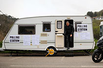 圖:英國選民在大篷車內(nèi)投票