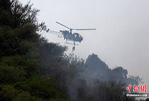 圖:巴基斯坦墜機現(xiàn)場搜救直升機在天空盤旋