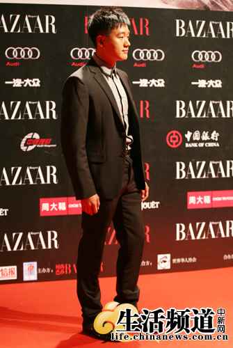 群星閃耀芭莎明星慈善夜:陸毅灰色西裝氣宇不凡