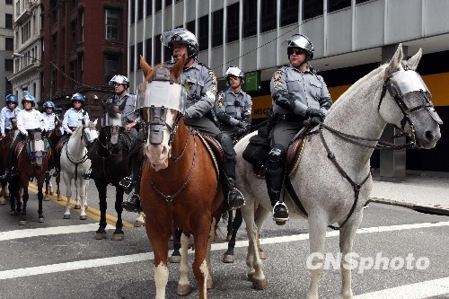 圖:匹茲堡街頭騎警護衛(wèi)峰會舉行