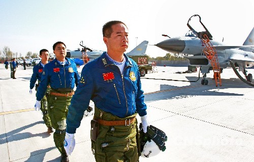 圖:中國空軍飛行表演隊準備升空(4)