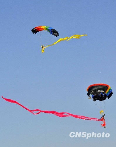 空軍60周年跳傘表演上演“仙女下凡”