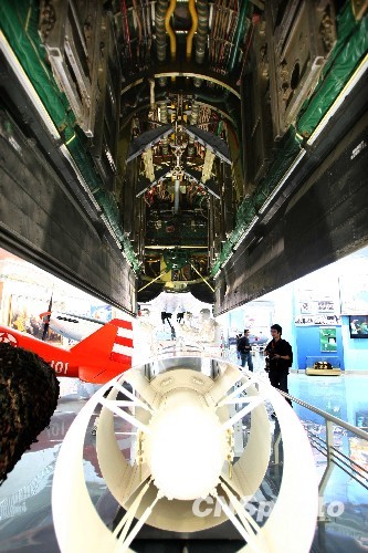 空軍武器裝備成就展:飛機裝填氫彈的模擬演示