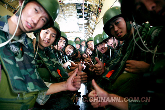 中國空軍舉行紀念建軍六十周年飛行、跳傘預演