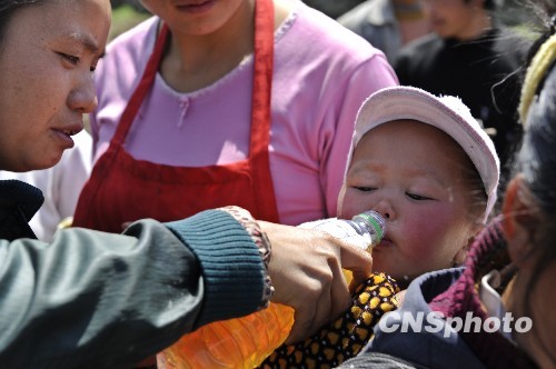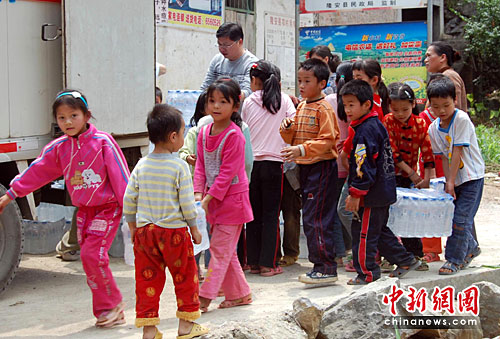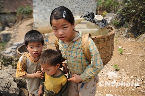 圖:西南大旱持續(xù) 娃娃參與“送水”