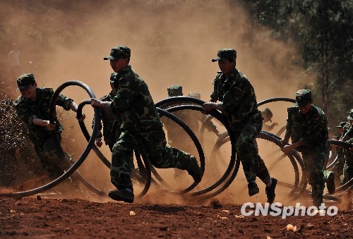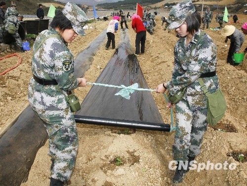 圖:抗旱大軍中最美麗的女兵身影