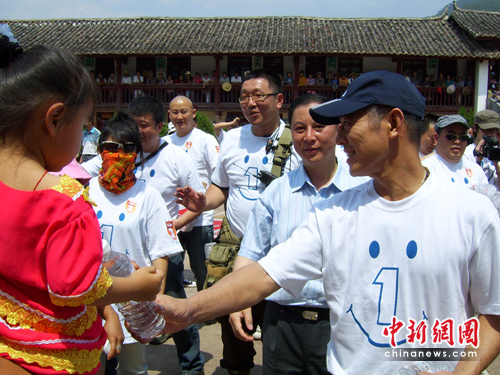 李連杰為云南旱區(qū)受災(zāi)民眾送上礦泉水