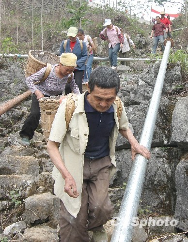 長壽之鄉(xiāng)巴馬大旱 6歲孩子背20斤水翻高山