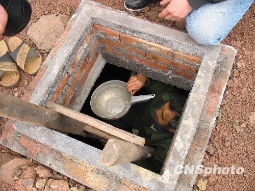 四川宜賓旱區(qū)的老人從水窖里取水