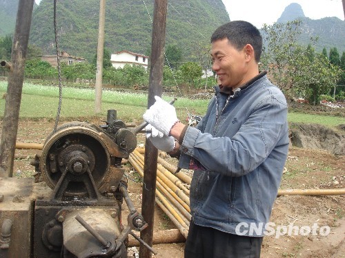 圖:廣西陽朔縣農(nóng)民打井抗旱