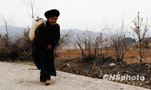 貴州干旱:71歲的彝族老人徒步背水回家