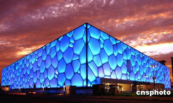 國(guó)家游泳中心又被稱(chēng)為“水立方”(Water Cube),位于北京奧林匹克公園內(nèi),是北京為2008年夏季奧運(yùn)會(huì)修建的主游泳館,也是2008年北京奧運(yùn)會(huì)標(biāo)志性建筑物之一。它的設(shè)計(jì)方案,是經(jīng)全球設(shè)計(jì)競(jìng)賽產(chǎn)生的“水的立方”([H2O]3)方案。2003年12月24日開(kāi)工,在2008年1月28日竣工。其與國(guó)家體育場(chǎng)(俗稱(chēng)鳥(niǎo)巢)分列于北京城市中軸線北端的兩側(cè),共同形成相對(duì)完整的北京歷史文化名城形象。做為北京2008年夏季奧運(yùn)會(huì)修建的主游泳館,與國(guó)家體育場(chǎng)“鳥(niǎo)巢”同時(shí)被稱(chēng)為2008年北京奧運(yùn)會(huì)標(biāo)志性建筑物。
