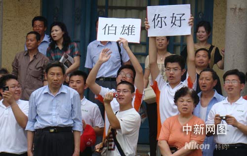 大學(xué)生在中山陵迎候吳伯雄 打出"伯雄你好"標(biāo)語