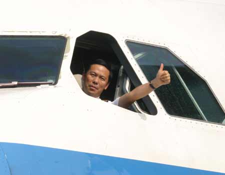 圖:南航董事長(zhǎng)親駕兩岸周末包機(jī)抵臺(tái)