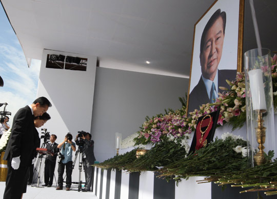 圖:韓國總統(tǒng)李明博吊唁金大中