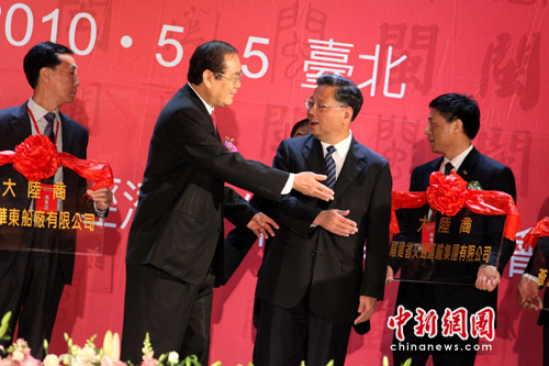 圖:黃小晶曾永權(quán)為8家福建赴臺(tái)投資企業(yè)授牌
