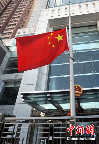 中央駐港機(jī)構(gòu)國(guó)旗降半旗哀悼遇難香港同胞