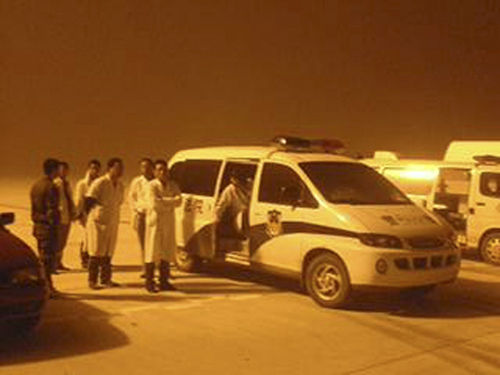 圖:救援人員在飛機(jī)失事現(xiàn)場(chǎng)待命