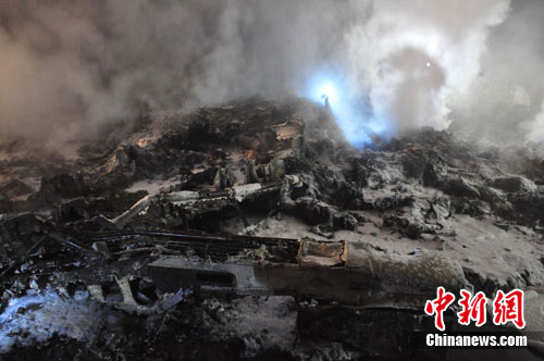 救援人員在飛機(jī)殘骸邊展開救援工作