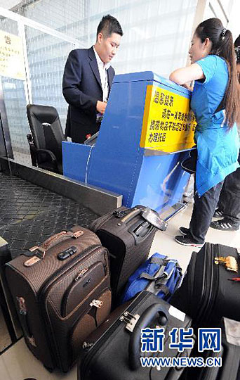 圖:伊春機(jī)場(chǎng)乘客在辦理登機(jī)手續(xù)