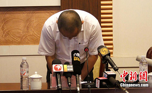 圖:河南航空公司監(jiān)事會(huì)主席鞠躬致歉