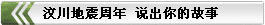 1年過去了,相比災難,更讓我們銘記的是災難面前中國人的堅強、勇氣和愛。請寫下您和汶川地震的故事,傳遞“萬眾一心、眾志成城,不畏艱險、百折不撓,以人為本、尊重科學”的抗震精神……
