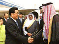 胡錦濤在曼谷出席APEC領(lǐng)導人非正式會議期間與布什會晤。