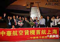 兩岸首班專案貨運(yùn)包機(jī)——臺(tái)灣“中華航空公司”CI六九○一航班于二00六年七月二十日凌晨零時(shí)三十三分飛抵上海浦東機(jī)場。該首航貨機(jī)于十九日晚間在臺(tái)灣桃園機(jī)場起飛,歷經(jīng)二個(gè)半小時(shí)航程,抵達(dá)上海,機(jī)型采用波音七四七—四○○型全貨機(jī)。該專案貨機(jī)的航線,與此前兩岸春節(jié)客運(yùn)包機(jī)的航線相一致,由于仍需繞道飛經(jīng)香港航管區(qū)上空,因此尚非真正意義上的兩岸直航。據(jù)了解,本次專案貨運(yùn)包機(jī)搭載的是在滬辦廠的臺(tái)商為擴(kuò)大產(chǎn)能而托運(yùn)的機(jī)械設(shè)備和相關(guān)器材。業(yè)內(nèi)人士分析,兩岸貨運(yùn)包機(jī)的實(shí)現(xiàn),一定程度上能夠滿足臺(tái)商特別是高科技廠商在大陸投資的實(shí)際需求,有利于提升這些企業(yè)在國際市場上的競爭力。與此同時(shí),這也是兩岸空中通航在原有基礎(chǔ)上又邁出的新一步。