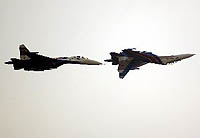 俄"蘇-27"戰(zhàn)機精彩編隊飛行