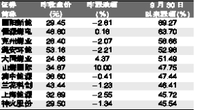 目前,一些煤炭企業(yè)已經(jīng)發(fā)出三季報(bào)預(yù)告,基本延續(xù)半年報(bào)的喜人業(yè)績(jī),三季度保持高增長(zhǎng),平均增幅在100%以上,兗州煤業(yè)、神火股份、盤江股份、國(guó)陽(yáng)新能、靖遠(yuǎn)煤業(yè)等,業(yè)績(jī)表現(xiàn)優(yōu)秀。