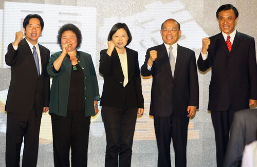 臺灣年底“五都”市長選舉,隨著民進(jìn)黨中執(zhí)會在5月25日下午正式通過提名人選,藍(lán)綠陣營十大戰(zhàn)將已全部就位。國民黨提名郝龍斌、朱立倫、胡志強(qiáng)、郭添財(cái)、黃昭順分別出征臺北市、新北市、大臺中、大臺南、大高雄;民進(jìn)黨則以蘇貞昌、蔡英文、蘇嘉全、賴清德、陳菊對陣。