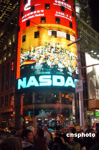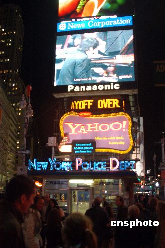 中國著名青年鋼琴家郎朗與中國愛樂樂團在北京第十屆國際音樂節(jié)上合作演出鋼琴協(xié)奏曲《黃河》,美東時間十月二十五日晚七時,紐約地標時代廣場前的巨大電子顯示屏組進行轉播,吸引大量來自全球各地的旅游者和當?shù)厝笋v足欣賞。中新社發(fā) 鄧悅 攝