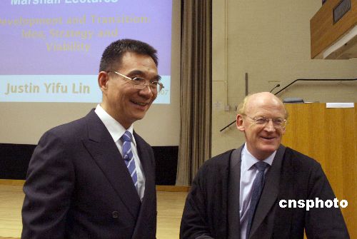 世界頂級經(jīng)濟(jì)學(xué)講壇之一的劍橋大學(xué)“馬歇爾講座”每年邀請一位世界著名經(jīng)濟(jì)學(xué)家擔(dān)任主講人,北京大學(xué)中國經(jīng)濟(jì)研究中心林毅夫教授作為首個中國學(xué)者今年應(yīng)邀主講。中新社發(fā) 李鵬 攝
