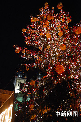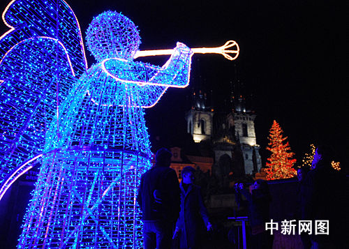 當(dāng)?shù)貢r(shí)間12月1日,捷克首都布拉格老場(chǎng)廣場(chǎng)舉行傳統(tǒng)的圣誕燈火亮燈和圣誕集市開張儀式。在大約12000名游客的歡呼聲中,布拉格市長貝姆啟動(dòng)開關(guān),胡斯塑像旁邊22米高的圣誕樹由下到上開始放射出燦爛光芒。今年新增的矗立在集市四角的4座長著翅膀吹號(hào)的天使燈火塑像讓游客們特別感興趣。黃頻 攝