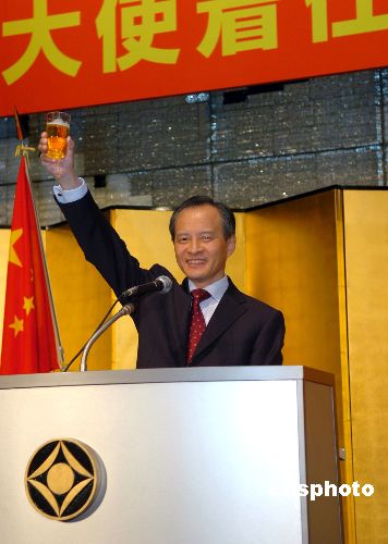 12月18日晚上,中國駐日使館在東京新大谷飯店舉行崔天凱大使到任招待會,日本各政黨代表,政府各部門代表,各大企業(yè)代表以及在日華僑華人代表近200人參加。圖為崔天凱大使在致詞完后舉杯祝酒。中新社發(fā) 滕劍峰 攝