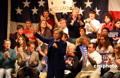 1月7日,美國民主黨總統(tǒng)競選人希拉里在新罕布什爾州的沙倫市進行該州初選前最后的競選活動。希拉里此前在艾奧瓦州初選落敗,目前在新州民調(diào)亦處于落后,競選形勢不容樂觀。中新社發(fā) 李靜 攝