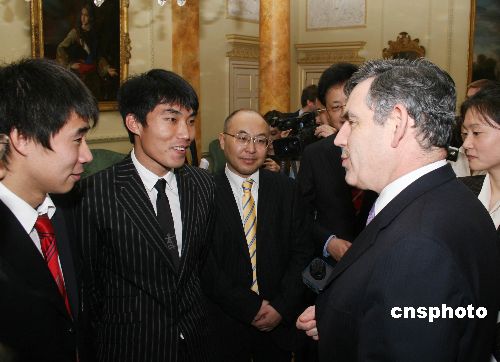 當(dāng)?shù)貢r(shí)間1月14日下午,即將訪華的英國(guó)首相布朗在唐寧街十號(hào)會(huì)見旅英華人華僑、中資機(jī)構(gòu)負(fù)責(zé)人、留學(xué)生等華人杰出代表。中國(guó)足球明星鄭智和董方卓作為受邀代表一同出席。中新社發(fā) 李鵬 攝