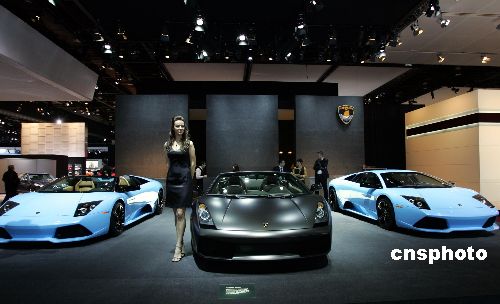 當?shù)貢r間1月14日,蘭博基尼在底特律北美車展上彰顯個性,高雅醒目的色彩和奢華的內(nèi)廂配置,吸引了眾多媒體關(guān)注。中新社發(fā) 潘索菲 攝