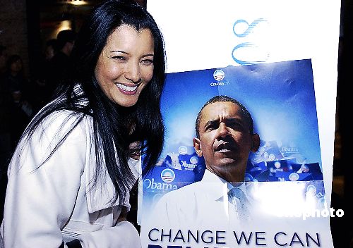 圖:美國好萊塢華裔女星胡凱莉支持奧巴馬參選總統(tǒng)