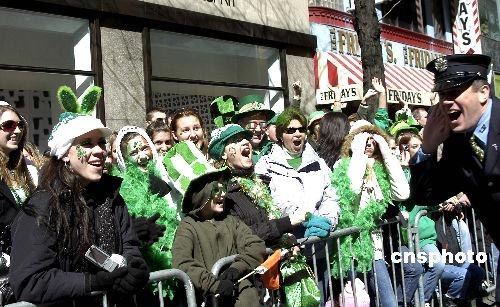 愛爾蘭裔美國人以綠色裝扮自己慶祝這一傳統(tǒng)節(jié)日。